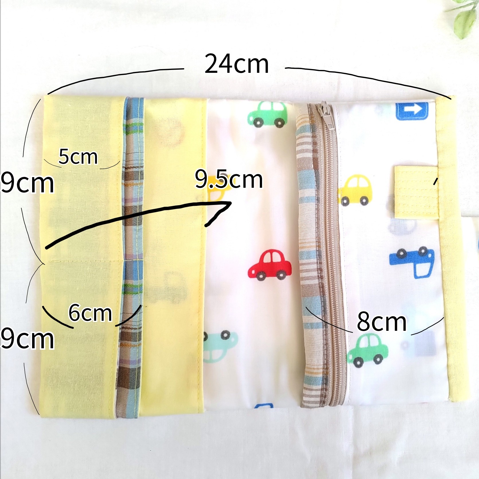 母子手帳は可愛い雰囲気が出るように黄色い生地とチェック柄を合わせました。